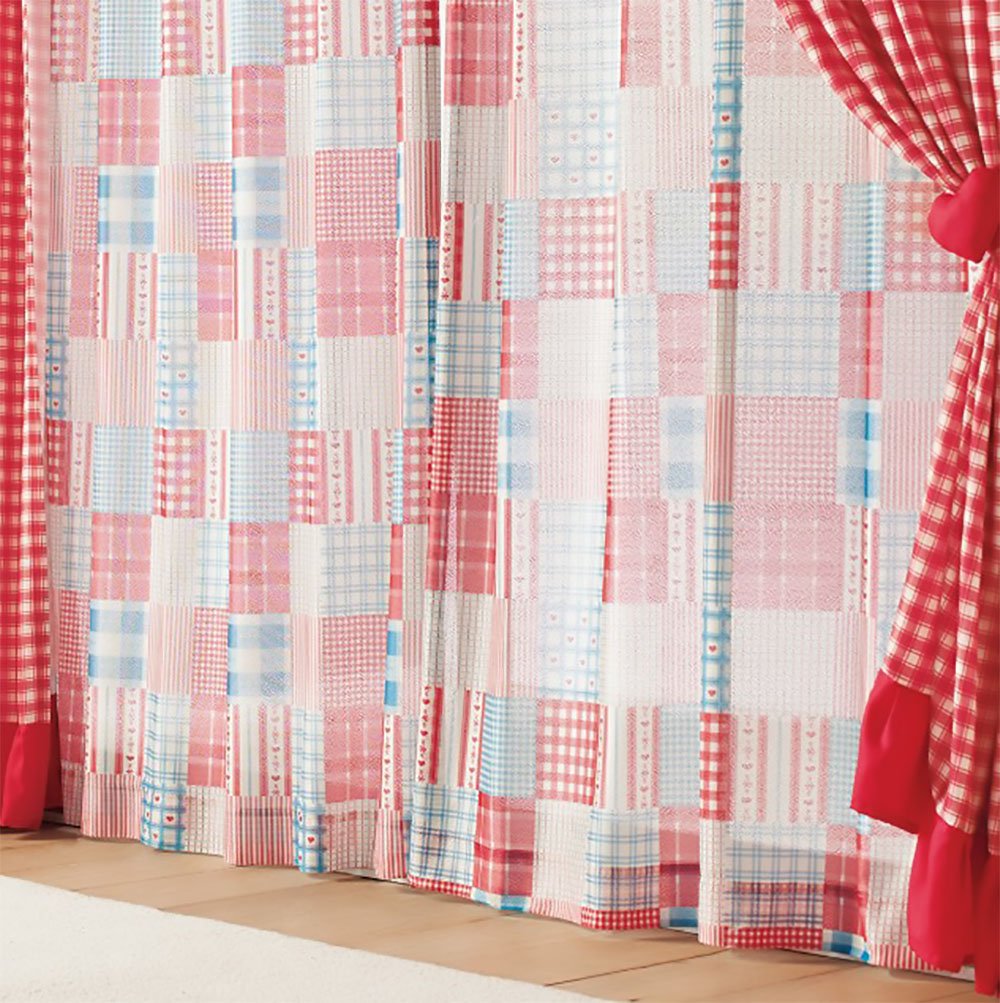 カーテンのチェック柄や小物の赤が部屋のアクセントとなっており明るい雰囲気でおしゃれです。