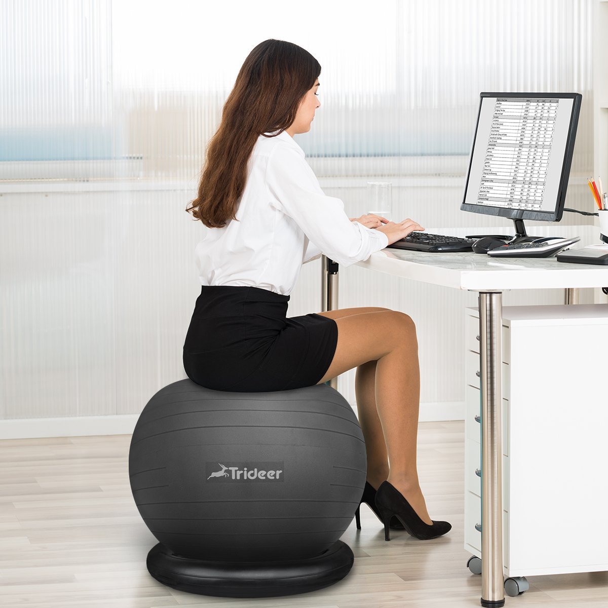 バランスボールは使わないとき、場所を取って邪魔になると敬遠しがちな方もいらっしゃいますが、いっそインテリアの一部として部屋に馴染むデザインを選べばおしゃれです。またエクササイズを日常化するためにも「椅子」として使うのもおすすめですよ。サイズは無理に小さいものの使用は控え、必ず自分の身長に合ったものを選んで、エクササイズ効果を最大限に引き出して下さい。