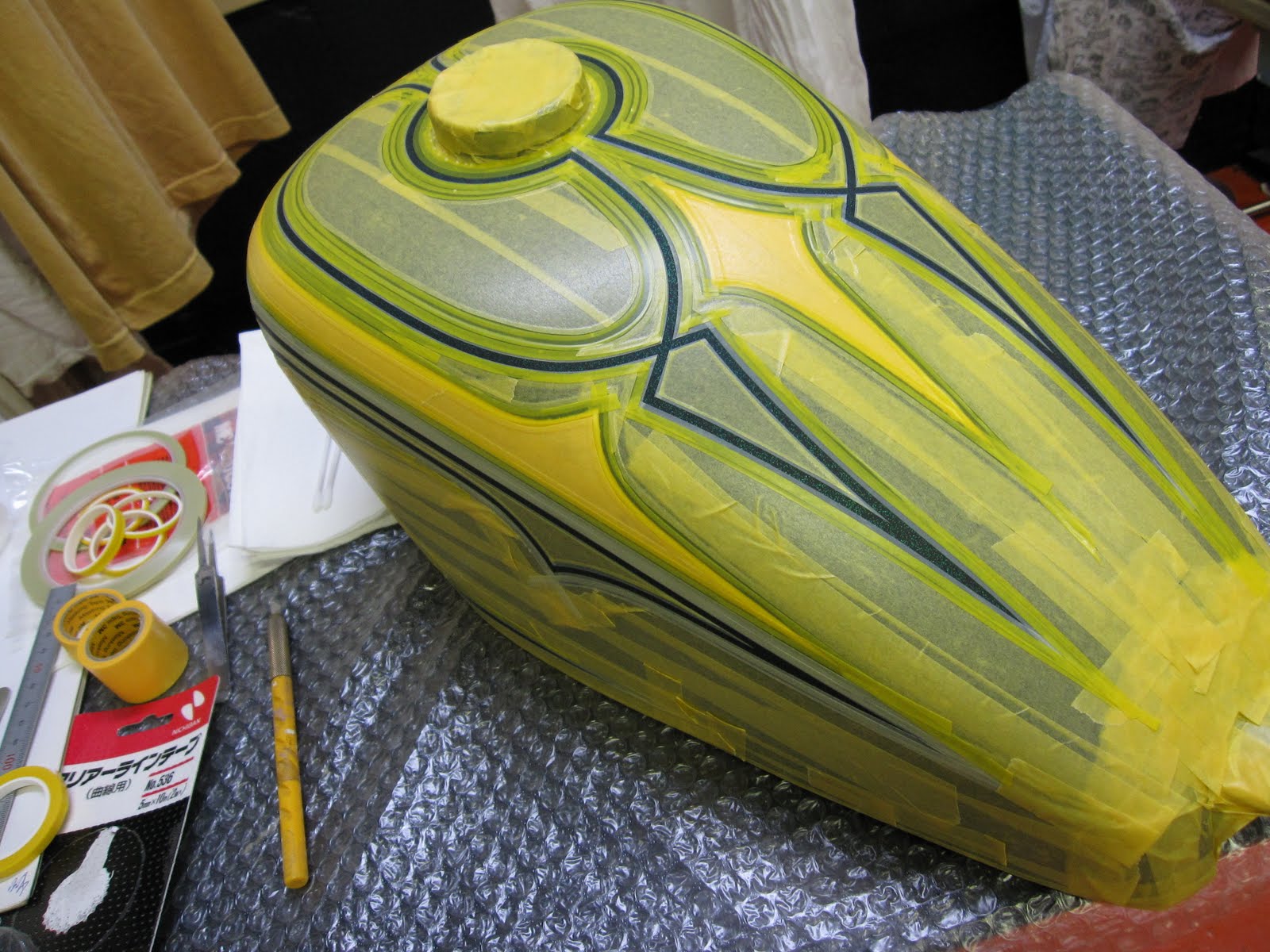 バイクのカウルやタンクを自分でスプレー塗装する方法と値段:マスキング