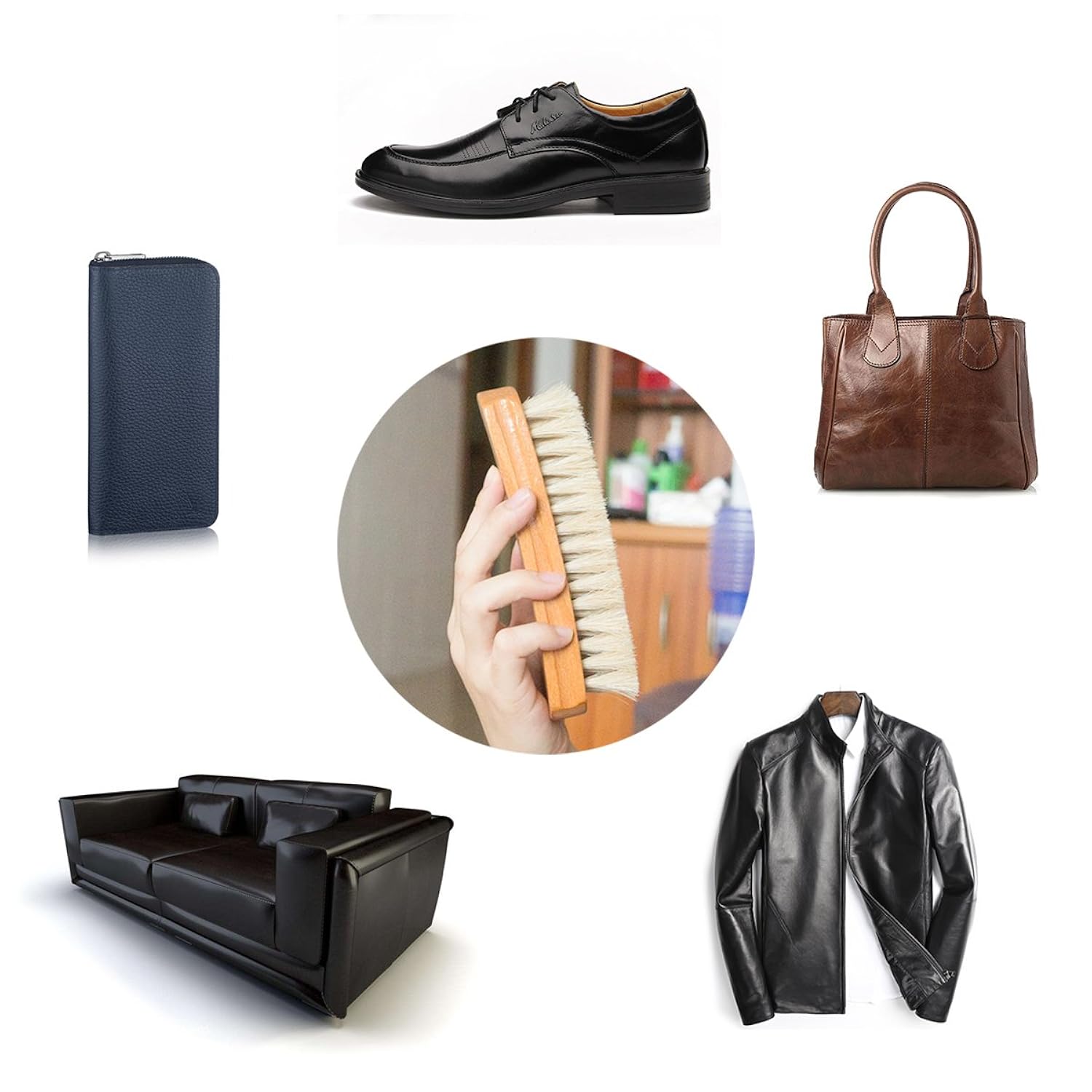 レザーには多くの毛穴があります。この毛穴にチリやホコリが溜まってしまい、最悪の場合カビやシミの原因にもなってしまうので、馬毛ブラシでのブラッシングが大事になります。ゴシゴシとブラッシングしたり毛先の硬いブラシは使用しないようにしましょう。