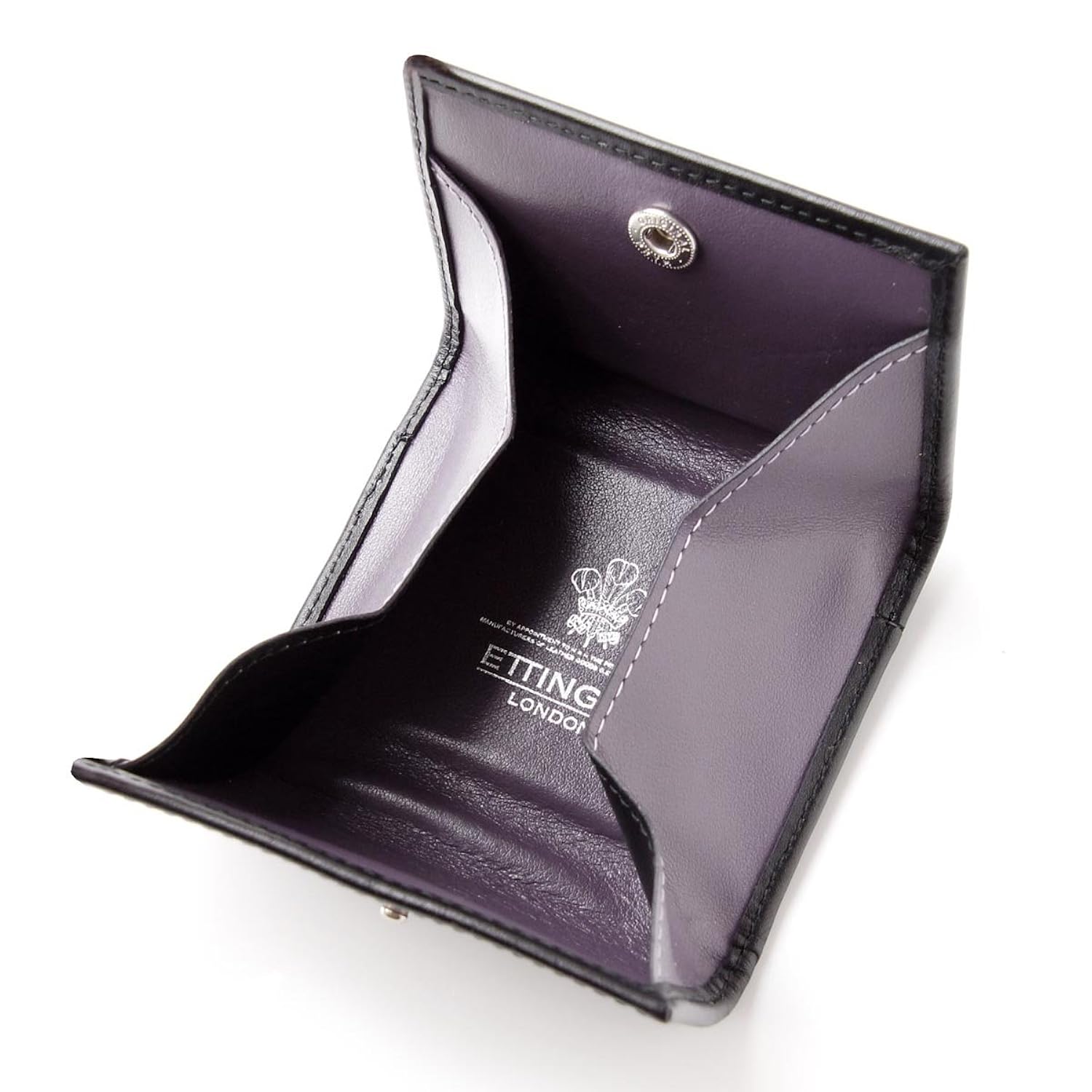 「ブライドルレザー・ラウンドファスナー」同様、こちらはブラックとパープルのツートンが特徴の「ロイヤルコレクション」に小銭入れが付いたモデルです。エッティンガーの特徴である薄さには劣りますが、実用性ではラウンドファスナーのシリーズの方が優れます。