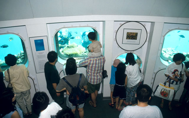 年間18万人が訪れる人気のスポットです。グアムでも特に多くの魚が集まる海洋保護区の中に設置された海中展望塔が有名で、室内にいながらサンゴ礁の海を楽しむことができます。レストランもあり、ファイヤーダンスなどのショーを楽しみながら食事することもできます。