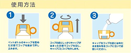 こちらもペットボトルの蓋を固定するタイプのペットボトル用コップ。コップとオープナーで2つに分かれているため、少ない力でも蓋を開けやすいのが魅力です。使い方は上記の画像をご参考に。蓋にはめ込むときには破損を防ぐためにも、ペットボトルはしっかり押さえておくのがポイントです。