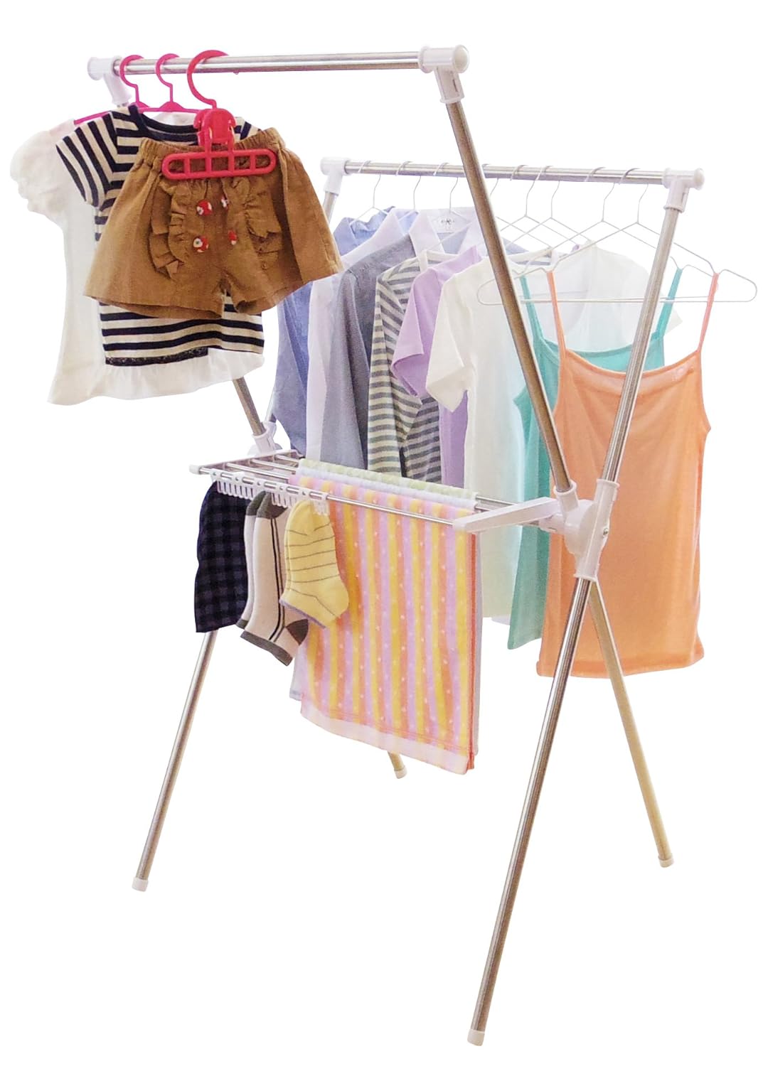 場所を取らないコンパクトなおすすめ室内用洗濯物干し④:「室内物干し X型レギュラー(ekans)」