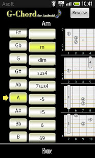 一つのコードにつき4通りの押さえ方と指番号登録しています。 コード名から押さえ方を探し出す場合に複数の画面間を移動することなくコードを探す事が出来ます。 逆引き(絞り込み検索)や最大20個のメモ(長押しメモ)、音の確認等が可能です。
