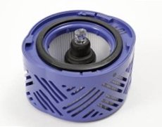 さて、現行のダイソンに採用されているフィルターは2種類あります。まず1枚目の写真のプレモーターフィルターです。これは円柱形のものと写真のような楕円形の形があります。写真の楕円形のものは昔のDCシリーズに採用されているもので、本体とサイクロンの間に設置されています。円柱形のものはDC62やV8などのそこそこ最新のモデルにも採用されているもので、つまんで引き抜くだけという取り回しの良さがウリ、サイクロンの上部に付いています。最後に2枚目の写真のポストモーターフィルターですね。V7やV8などのそこそこ最新モデルに採用されており、本体後部に付いています。どれもフィルターとしてはかなりの性能をもつものになっています。