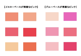 肌色タイプによって似合う色が決まってきます。同じピンク系の色を使うとしても、イエローベースとブルーベースでは似合う色が違ってくるのです。