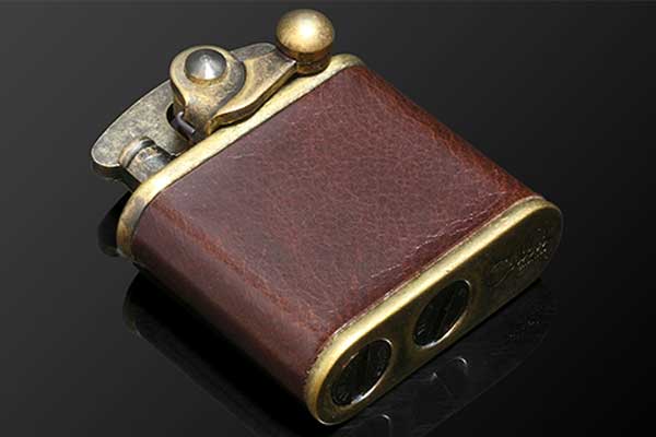 【ライターの種類別おすすめ】フリントオイルライター③ Colibri(コリブリ)/ライター ブラスバレル革巻き茶 308-0033