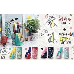 花柄や水玉模様が可愛いスマスタのスタンドペンケース。開くと磁石でくっつき、抜群の安定性と取り出しやすさを実現しています。デイリー使いにピッタリの商品です。前面にはスマホを入れてスマホスタンドとしても使用できます。