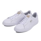 プーマ コートスター vuは、バルカナイズ製法でつくられたアレンジモデルです。バスカナイズ製法とは、素材の異なる布とゴムを接着するために、硫黄で満たした釜に入れ、圧力と熱を加える製法です。製造に手間とコストがかかりますが、レトロな仕上がりと軽さ・耐久性の評価が高く、プーマ コートスター vuもロングラン商品となっています。白地のレザーにロゴだけがゴールドというデザインは、ファッションテイストも選びません。