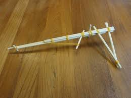 とてもシンプルな輪ゴムの弓矢ですが、割り箸を上手に駆使して、弓を充てがう部分まで付けています。細かい部分まで作り込まれた輪ゴム工作です。輪ゴム遊び道具としては、発想があればこうした工作もすぐに作れます。鉄砲と同じく、幼児には少し難しい工作になりますが、作ってあげれば幼児でも扱うことができる工作です。