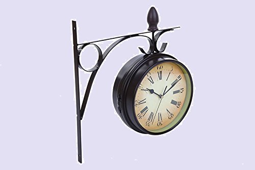 おしゃれ ! 両面 掛け時計 レトロ アンティーク 風 ヨーロピアン 西洋 北欧 風 スタイル インテリア 雑貨 時計 (ブラウン)