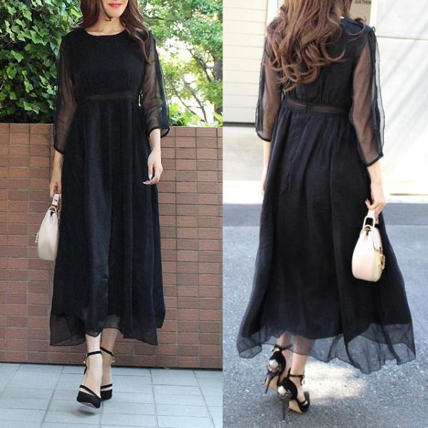 マキシワンピースを使った2018年夏に人気おすすめのリゾートコーデ、9つ目は大人エレガントマキシワンピースコーデです。黒色だと大人っぽさも際立ちます。まるでドレスのようなエレガントで上品なスカート部分が特徴的なマキシワンピースを使っています。バッグやシューズも大人っぽく、ゴージャスな雰囲気です。