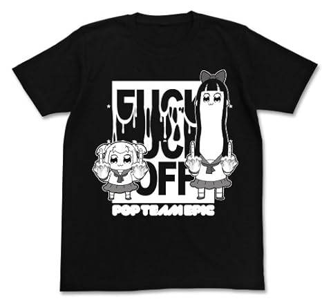 まずはTシャツですが、見ての通り、ポプ子とピピ美が中指を立てているという完全にケンカを売っているデザインです。主人公のふたりは作品の中でも過激な発言や行動を見せており、おかしくないといえばおかしくないのですがこれをTシャツのデザインにしてしまうところが『ポプテピピック』らしさなのかもしれません。