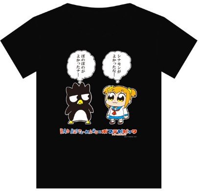 こちらはサンリオのバットばつ丸とのコラボTシャツです。しかし、お互いに思っていたキャラクターとは違うようで浮かない表情ですね。こんなことを書いてしまうコラボは『ポプテピピック』だけではないでしょうか。ただのコラボでは飽き足らずこんな仕掛けをしてしまう『ポプテピピック』だからこそここまでの人気を誇っているのでしょう。