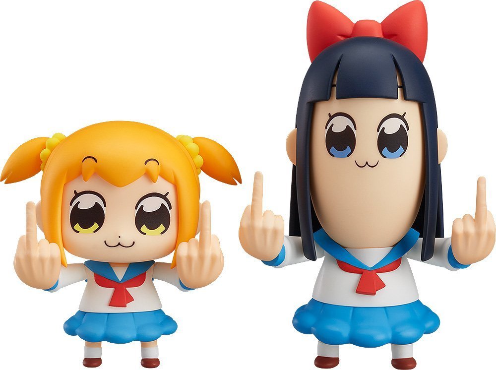 そしてついには2018年1月よりテレビアニメが放送開始され、「あのクソ四コマがアニメに!?」と大きな話題となりました。実際放送されると、30分アニメであるにもかかわらず、15分で内容が終了、その後、主人公のポプ子とピピ美の声優を男性に入れ替え、世界一早い再放送が流れるという前代未聞の構成になっていました。