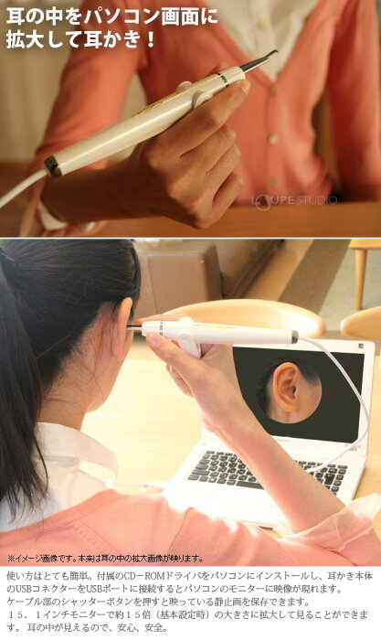 耳の中の映像をパソコンのモニターに映し、自分の耳の中を見ながら耳掃除ができます。